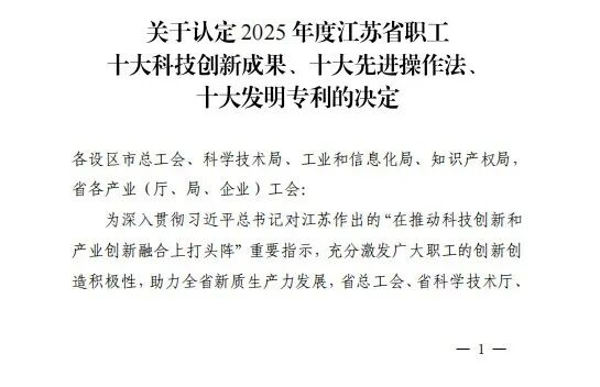 近日,2025年度江苏省职工十大科技创新成果、十大先进操作法、十大发明专利认定名单揭晓,园区中铁建电气化局集团康远新材料有限公司、中建钢构江苏有限公司3项科技创新成果入选。